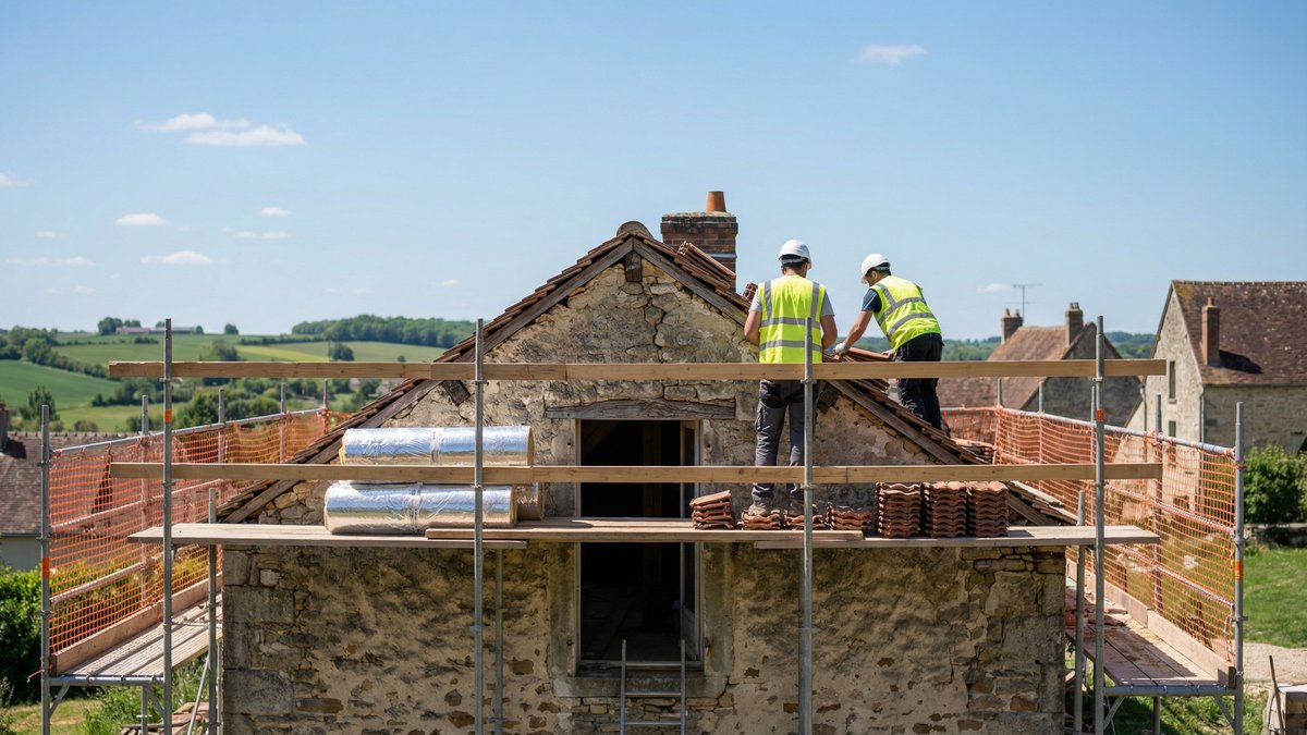 Isoler des combles ou reprendre une toiture mal en point, ce n'est pas spectaculaire, mais c'est souvent le meilleur ratio euros / kWh économisé. Une intervention bien menée combine :